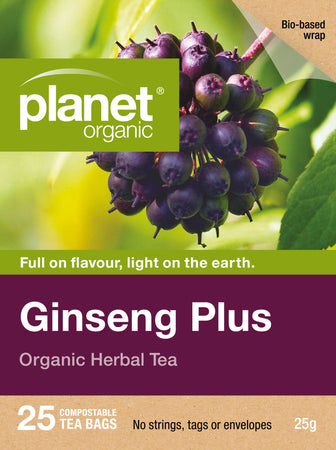 Planet Organic imports, blends and packs a comprehensive range of certified organic tea, meeting the demands of an increasingly health-conscious market. Provide superior quality and flavour. Enjoy Our Planet Organic Ginseng Plus Herbal Tea a dynamic certified organic blend of zestful ginseng, warming ginger, cinnamon balanced with licorice root.